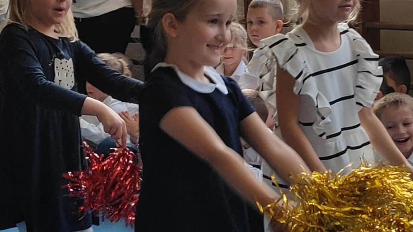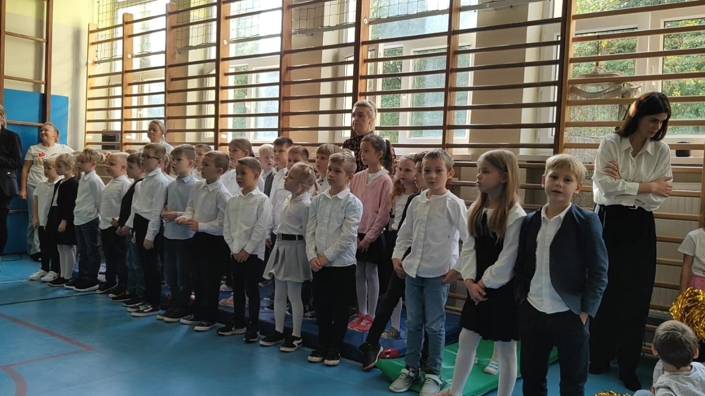 Rodzice, uczniowie, nauczyciele i pracownicy szkoły – wszyscy przeszli po czerwonym dywanie, delektując się kawą lub herbatą, a następnie uczestniczyli w apelu przygotowanym przez klasy 1–3 oraz oddział przedszkolny.
