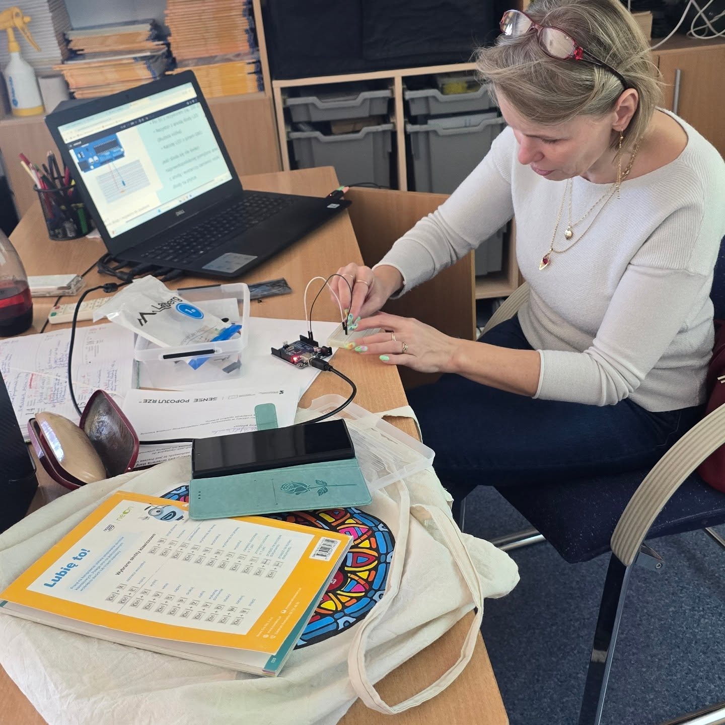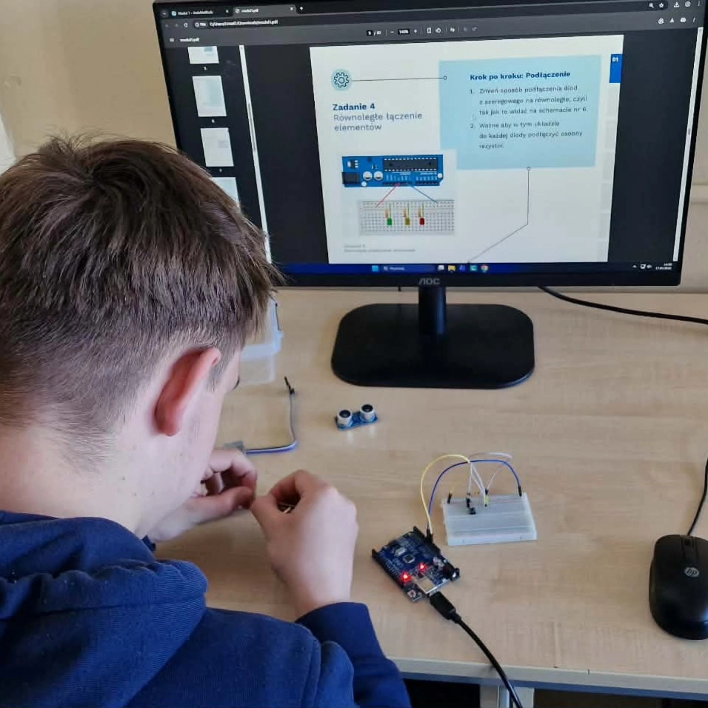 Zaczęliśmy od łączenia kabelków Celem doświadczeń z prądem jest pokazanie, że pojęcia abstrakcyjne można zrozumieć poprzez działanie, pomiar i analizę rzeczywistych danych. Cały zestaw lekcji - modułów jest ciekawą i angażującą realizacją podstawy programowej, która wychodzi poza schemat tradycyjnej lekcji. Po pierwszej lekcji cała grupa entuzjastycznie wyraziła chęć realizacji kolejnych modułów