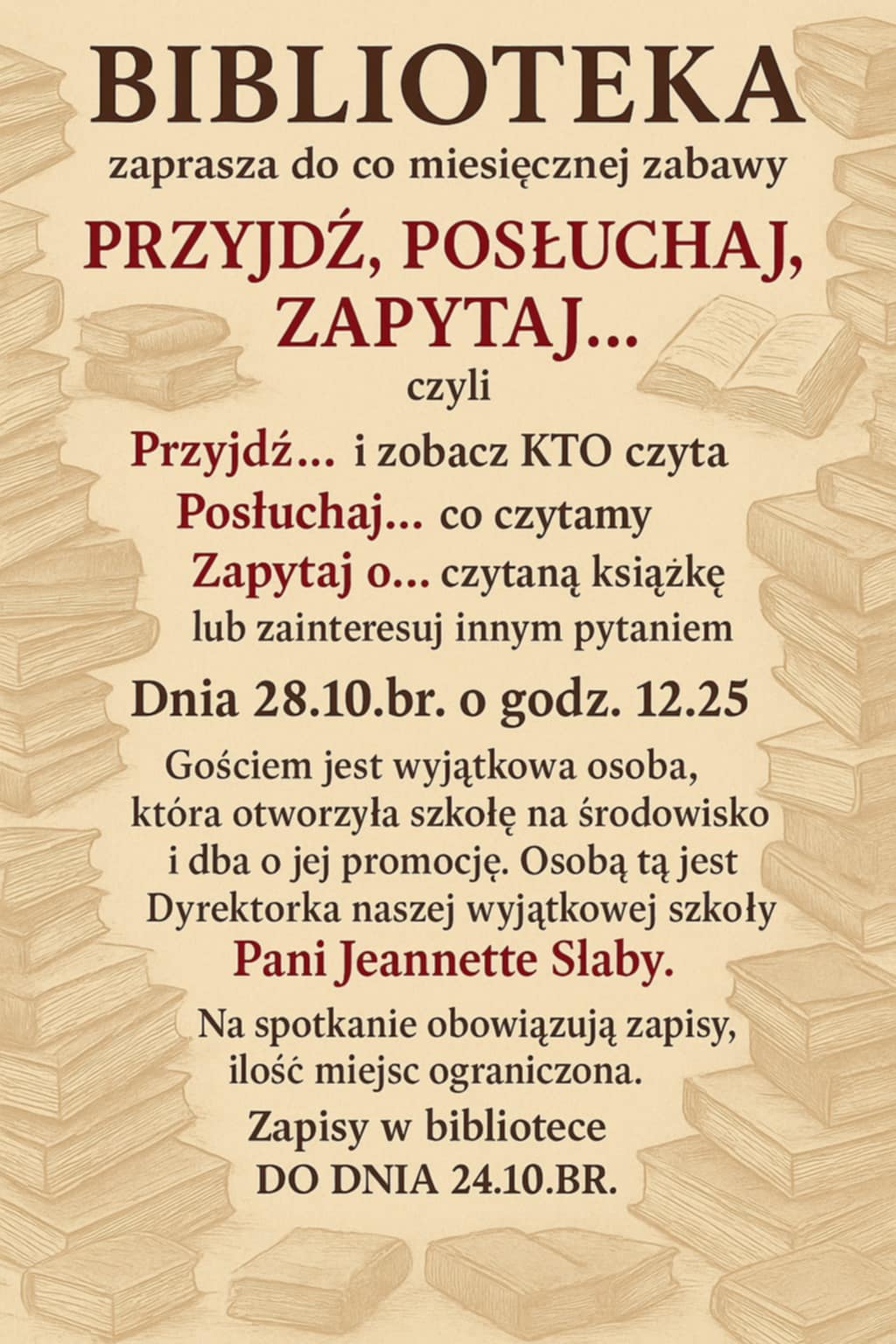 "Jesienne przeTWORY LITERACKIE" to zabawa na spostrzegawczość do udziału, w której zachęca biblioteka szkolna. Zabawa polega na odgadywaniu tytułów książek zamkniętych w słoikach, bez ich otwierania. W słoikach znajdują się wskazówki dotyczące tytułów, które można odkryć poprzez dotykanie, wstrząsanie i inne manipulacje słoikami.