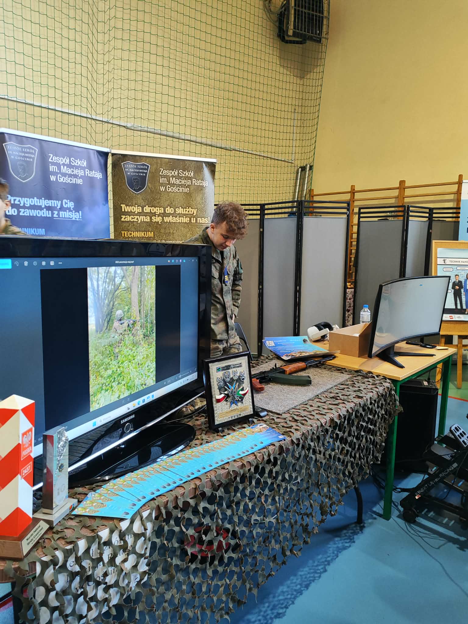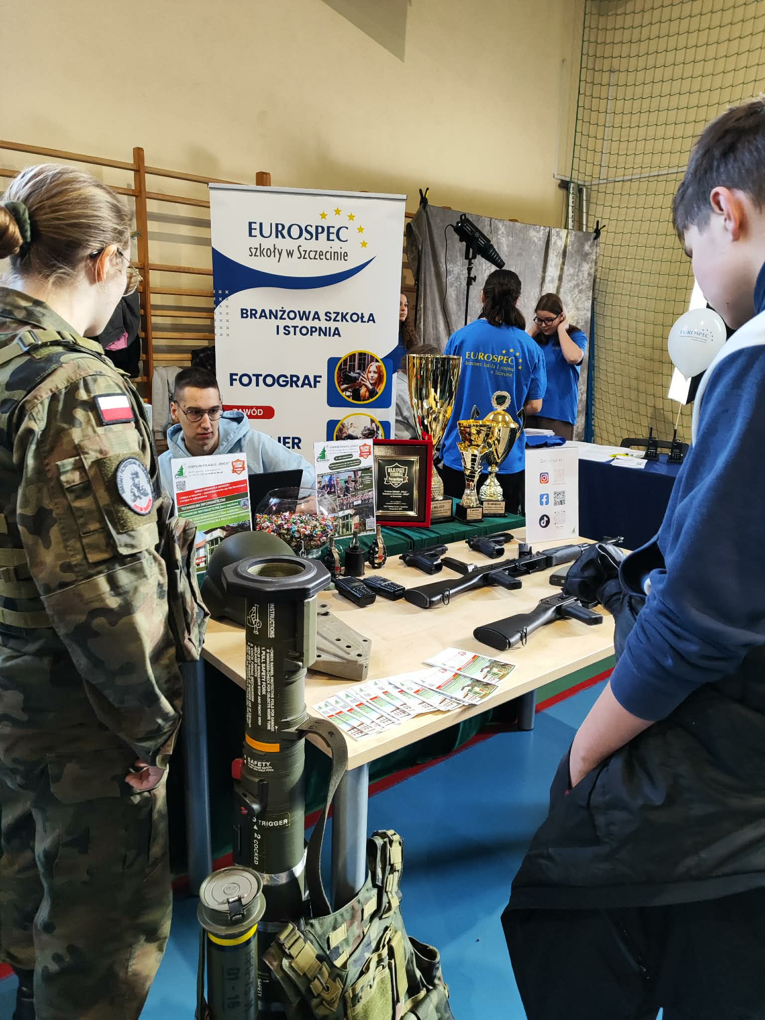 Nasi uczniowie mieli okazję poznać bardzo szeroką ofertę edukacyjną, a prezentujące się szkoły pokazały się z jak najlepszej strony. Ósmoklasiści mogli m.in. wypróbować symulator wyścigów samochodowych, zapoznać się z zasadami obsługi broni, obejrzeć podzespoły i układy techniczne, poznać programy do obróbki graficznej, skorzystać z okularów VR, a także przyjrzeć się prezentacjom zawodów, takich jak fryzjer. Nie zabrakło również smacznych przekąsek i słodkości.