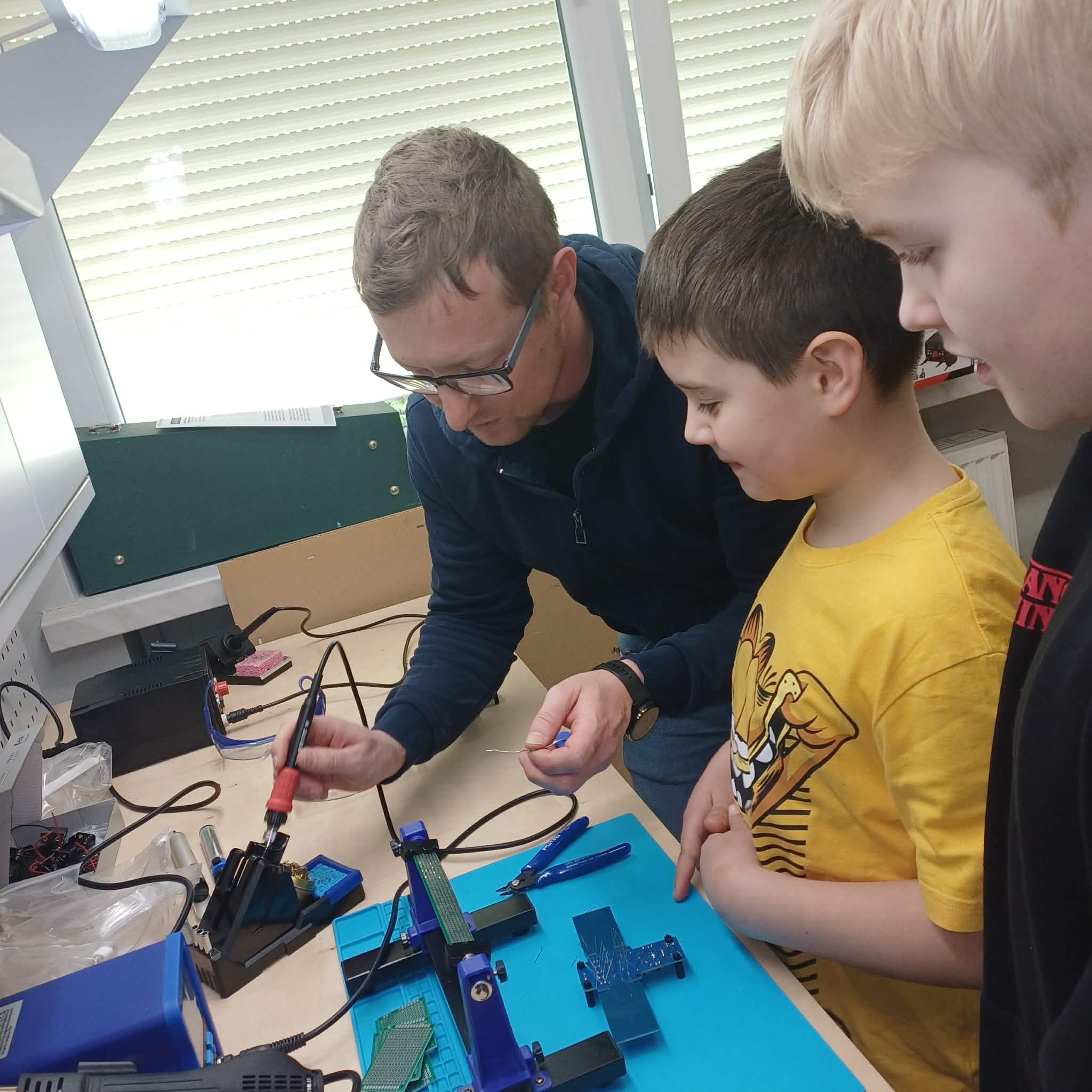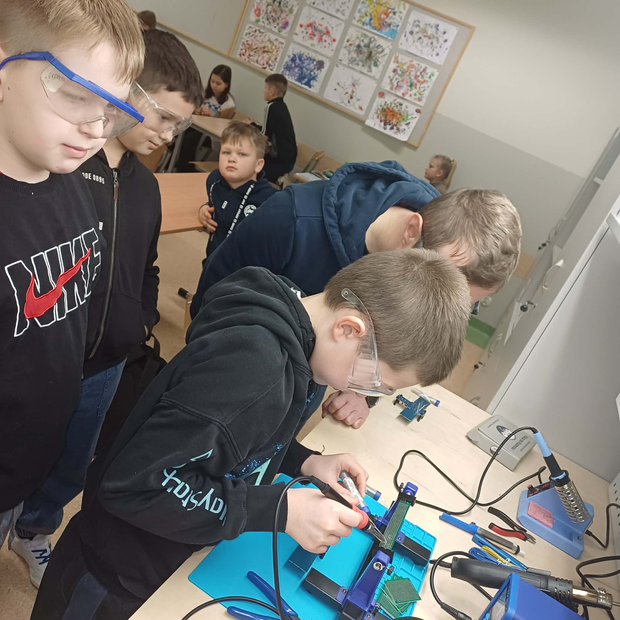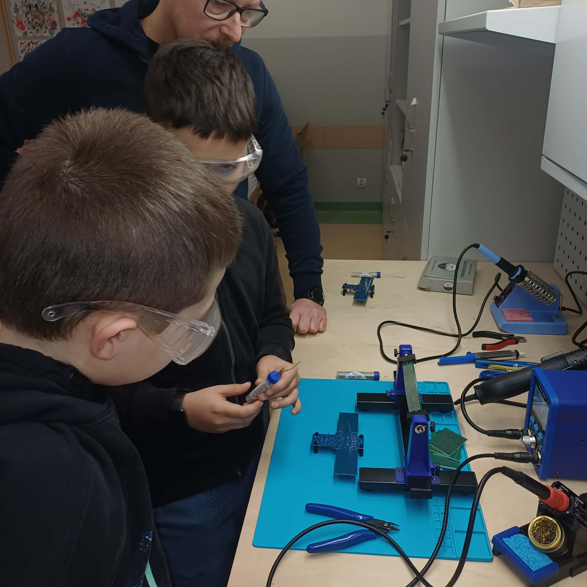 Uczniowie samodzielnie montowali klucz telegraficzny na płytce PCB w kształcie satelity, poznawali podstawy elektroniki, uczyli się lutowania oraz nadawania komunikatów alfabetem Morse’a — umiejętności, która może przydać się nawet w sytuacjach kryzysowych.