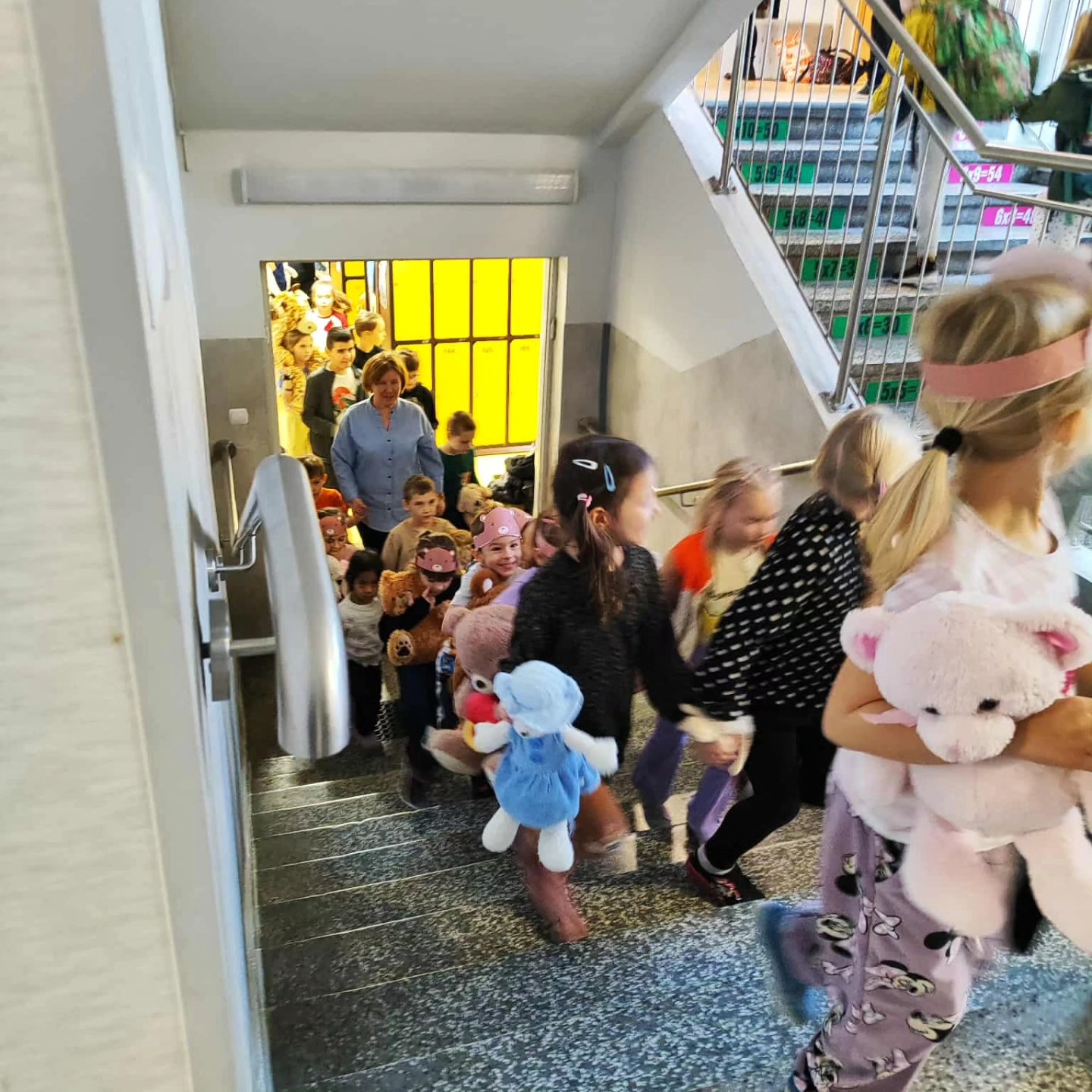 W czasie przerwy najmłodsi uczniowie wzięli udział w Misiowej Paradzie – była muzyka, tańce i nawet podrzucanie misiów w rytmie radosnej zabawy!