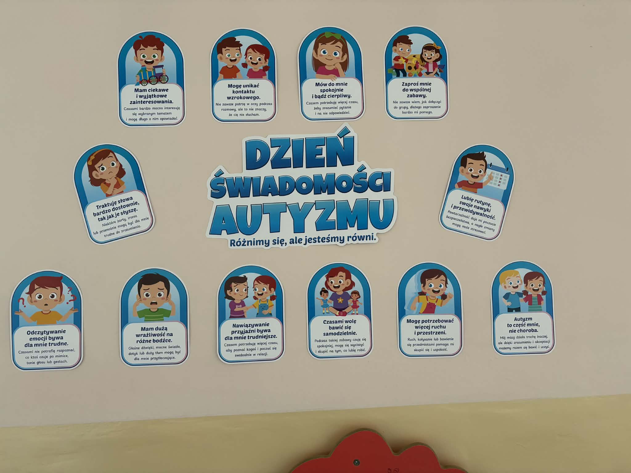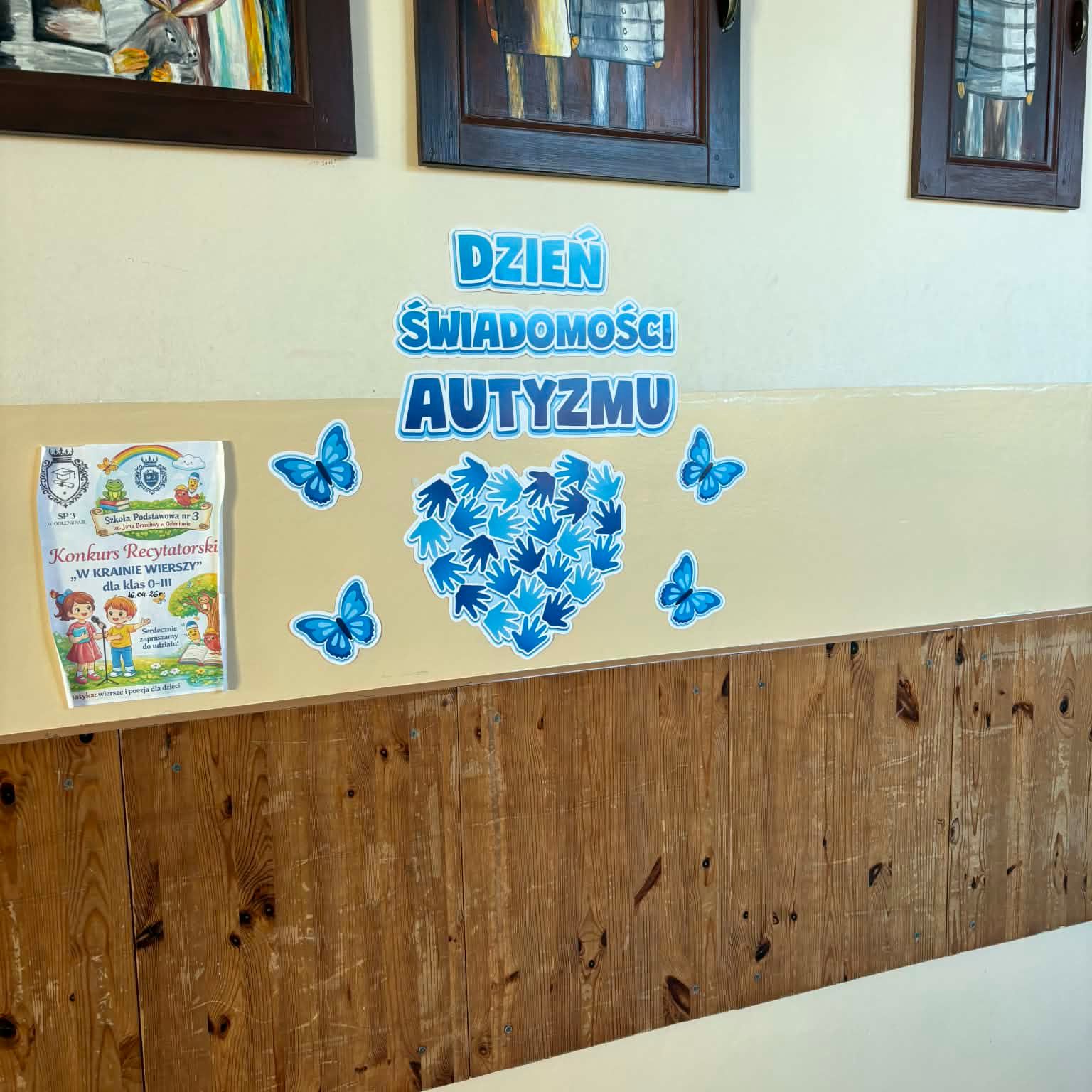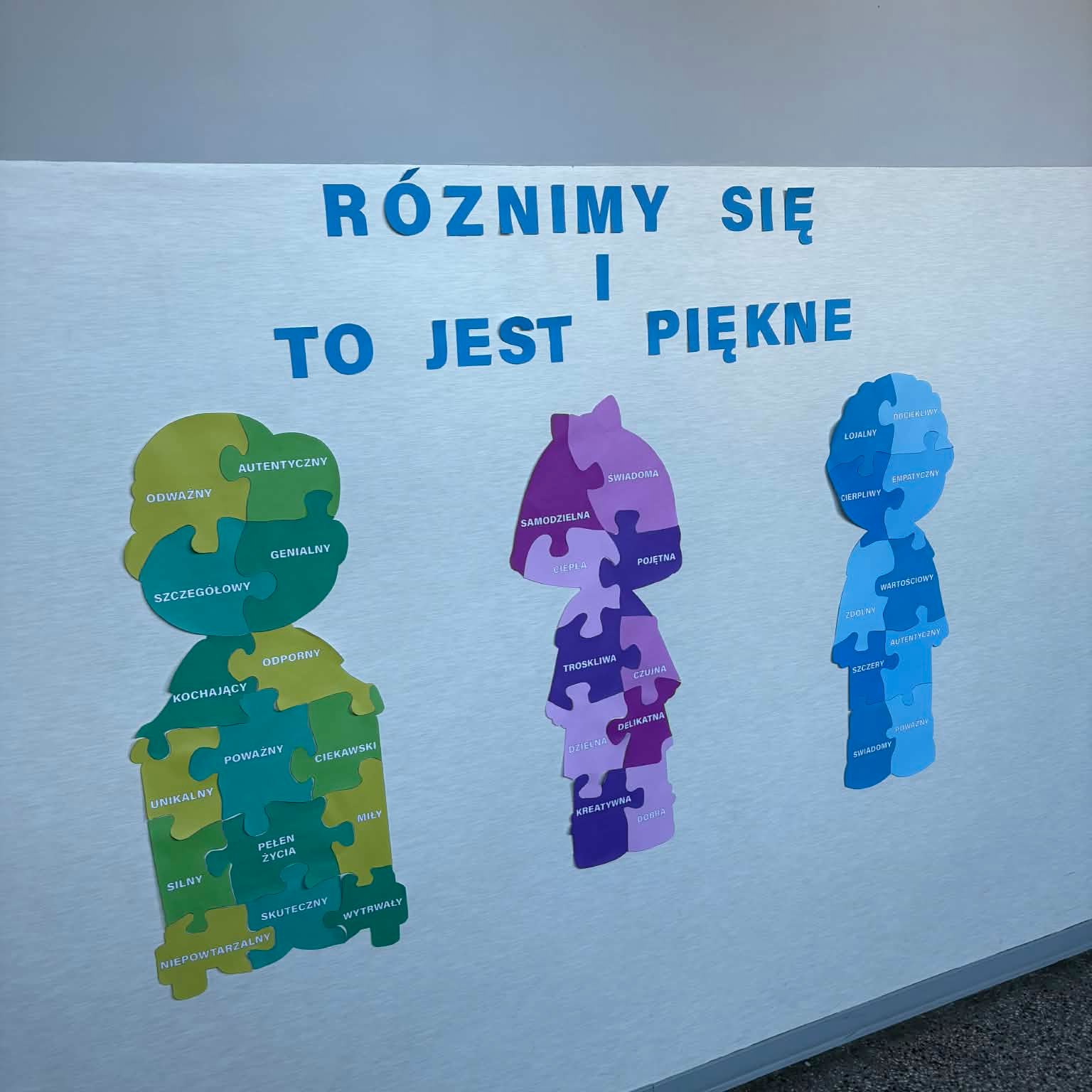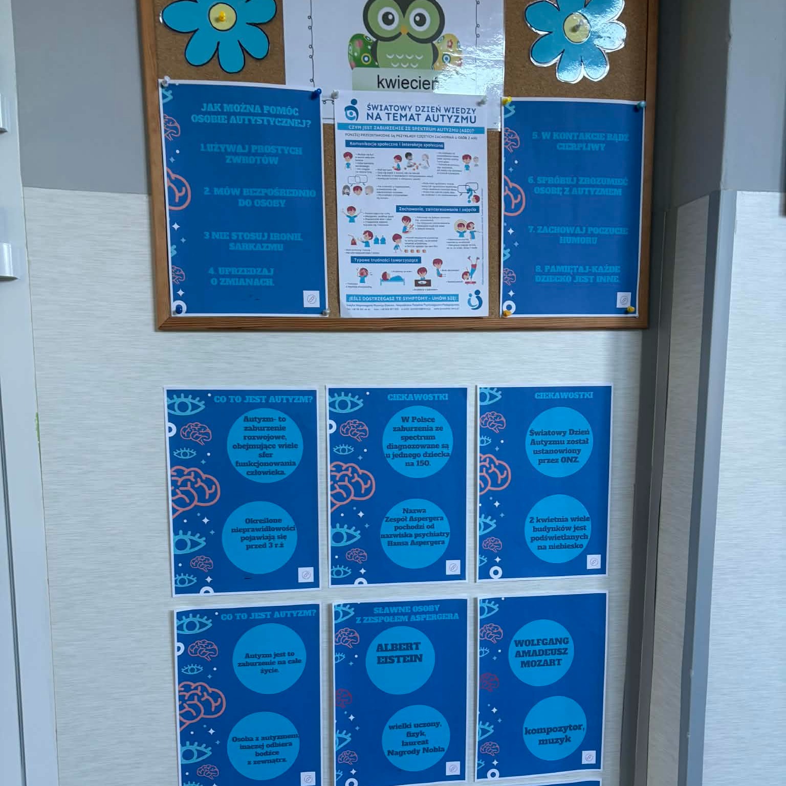 Na terenie szkoły zostały również umieszczone materiały edukacyjne dotyczące autyzmu oraz jego wczesnych objawów. Dzięki temu chcemy zwiększać świadomość nie tylko wśród uczniów, ale także całej społeczności szkolnej i odwiedzających nas gości.