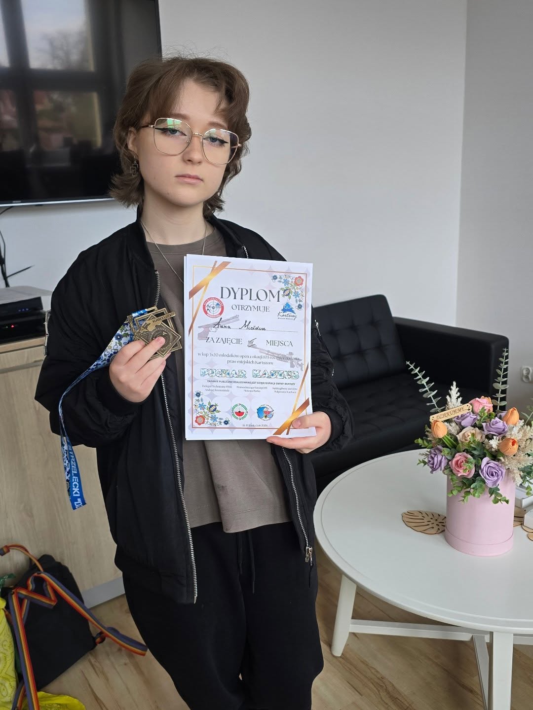 Serdecznie gratulujemy Ani Miełdun, uczennicy klasy 8, zajęcia I miejsca w kategorii młodzik open podczas zawodów „Puchar Kaszub”, odbywających się z okazji 103. rocznicy nadania praw miejskich Kartuzom. To wspaniałe osiągnięcie, będące dowodem talentu, systematycznej pracy i zaangażowania.
