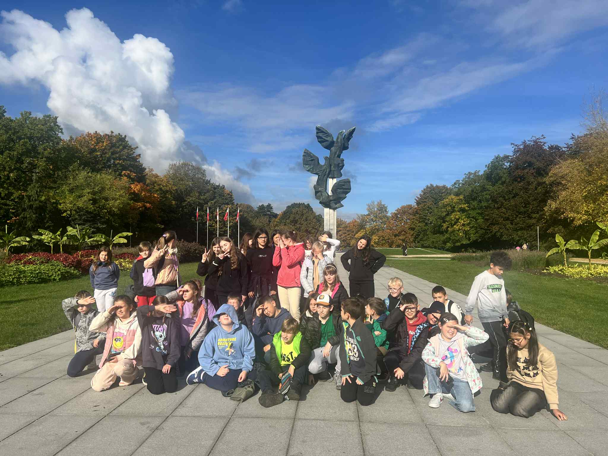 Lokalny przewodnik oprowadził uczniów po Wałach Chrobrego, snując opowieści o architektonicznych perełkach tej miejskiej wizytówki. Była sesja zdjęciowa na tarasie widokowym, zejście schodami do Odry, podziwianie fontann i rzeźb inspirowanych kulturą starożytnego Egiptu i Rzymu.