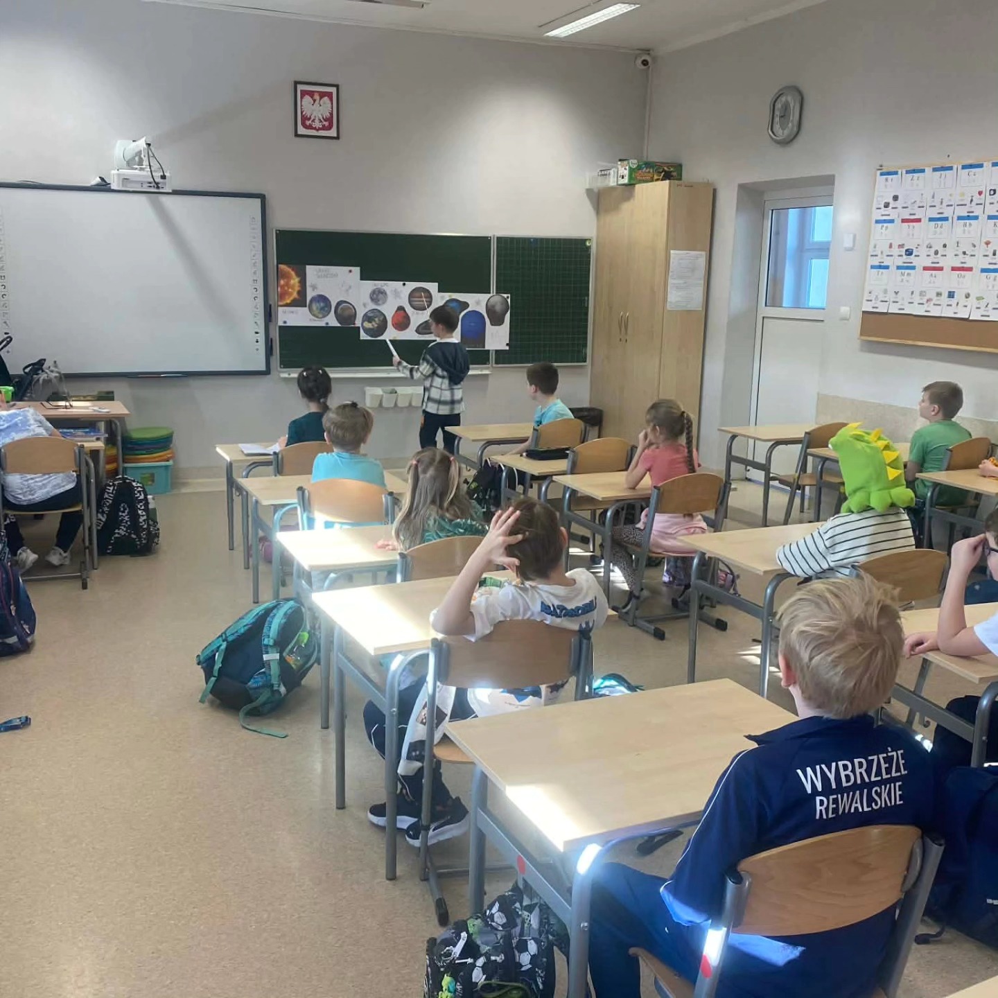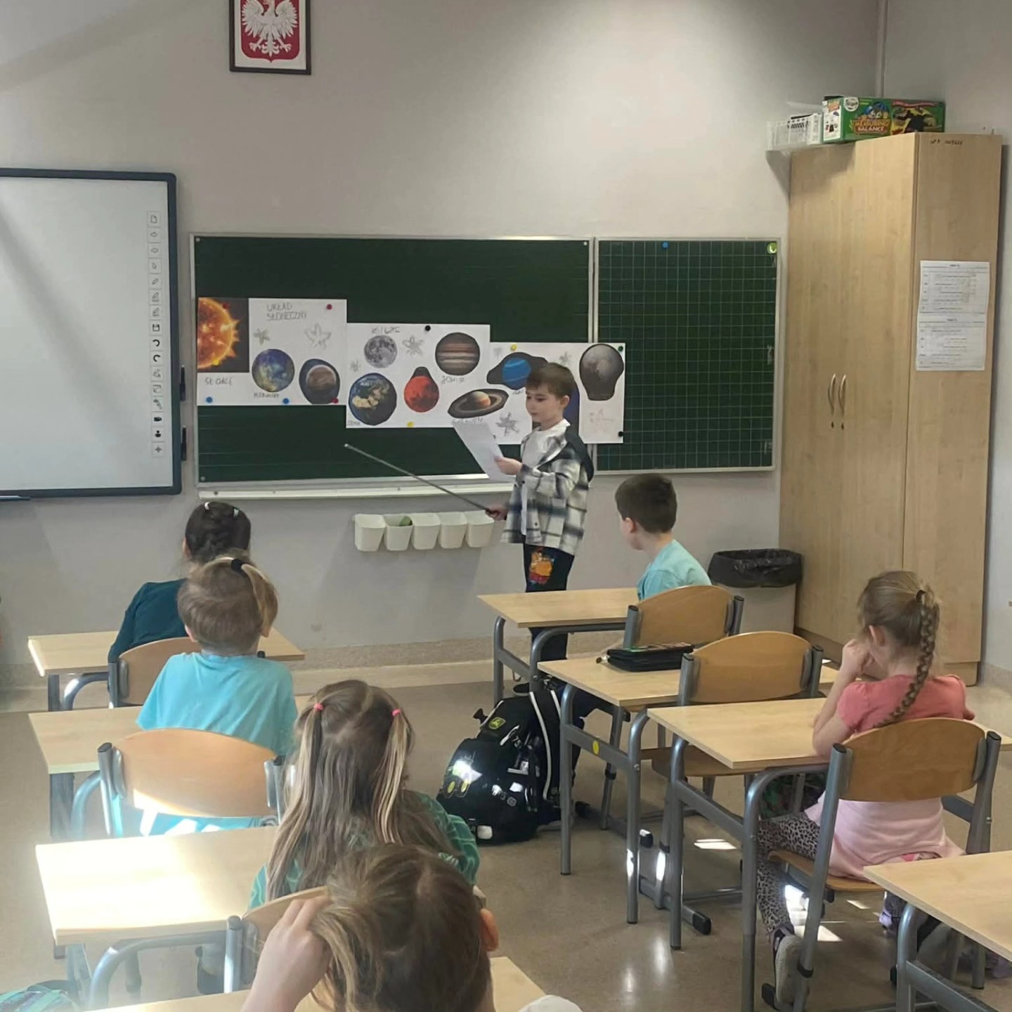 W czwartek w klasie 1a odbyła się wyjątkowa lekcja poświęcona Układowi Słonecznemu, którą poprowadził… uczeń tej klasy – Miłosz.