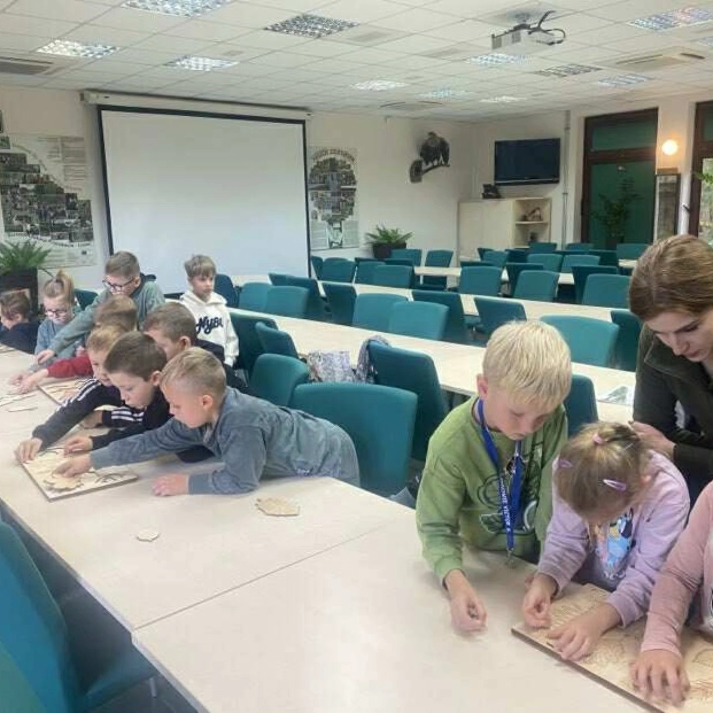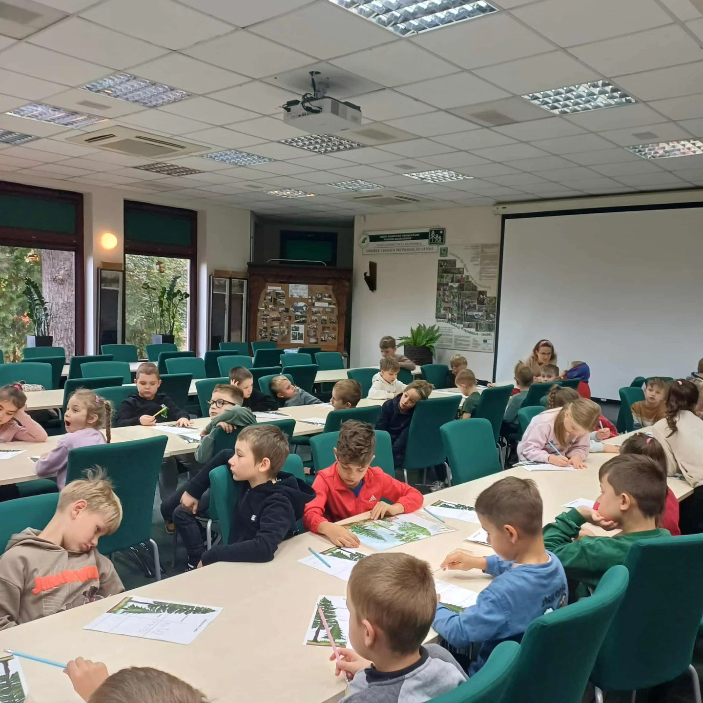 22 października uczniowie klas 1a i 1b uczestniczyli w warsztatach z edukacji leśnej w Nadleśnictwie Kliniska. Zajęcia rozpoczęły się od poznania warstw lasu – dzieci z łatwością potrafiły przyporządkować rośliny i zwierzęta do odpowiednich poziomów.