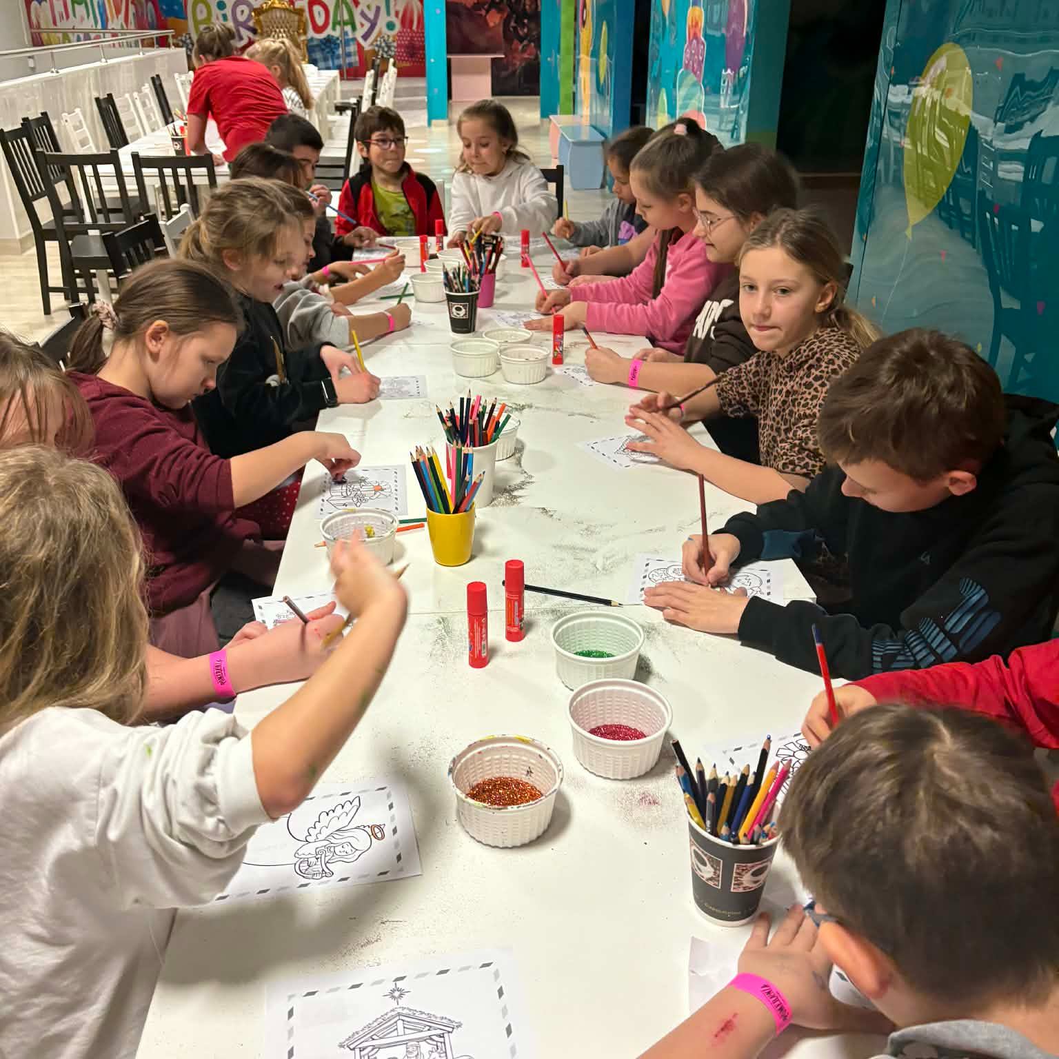 Dzieci wzięły udział w twórczych warsztatach mikołajkowych. Każdy uczestnik wykonał własną styropianową bombkę, którą następnie pomalował i udekorował brokatem. Kolejnym punktem programu było napisanie listu do Świętego Mikołaja i wrzucenie go do specjalnej skrzynki.
