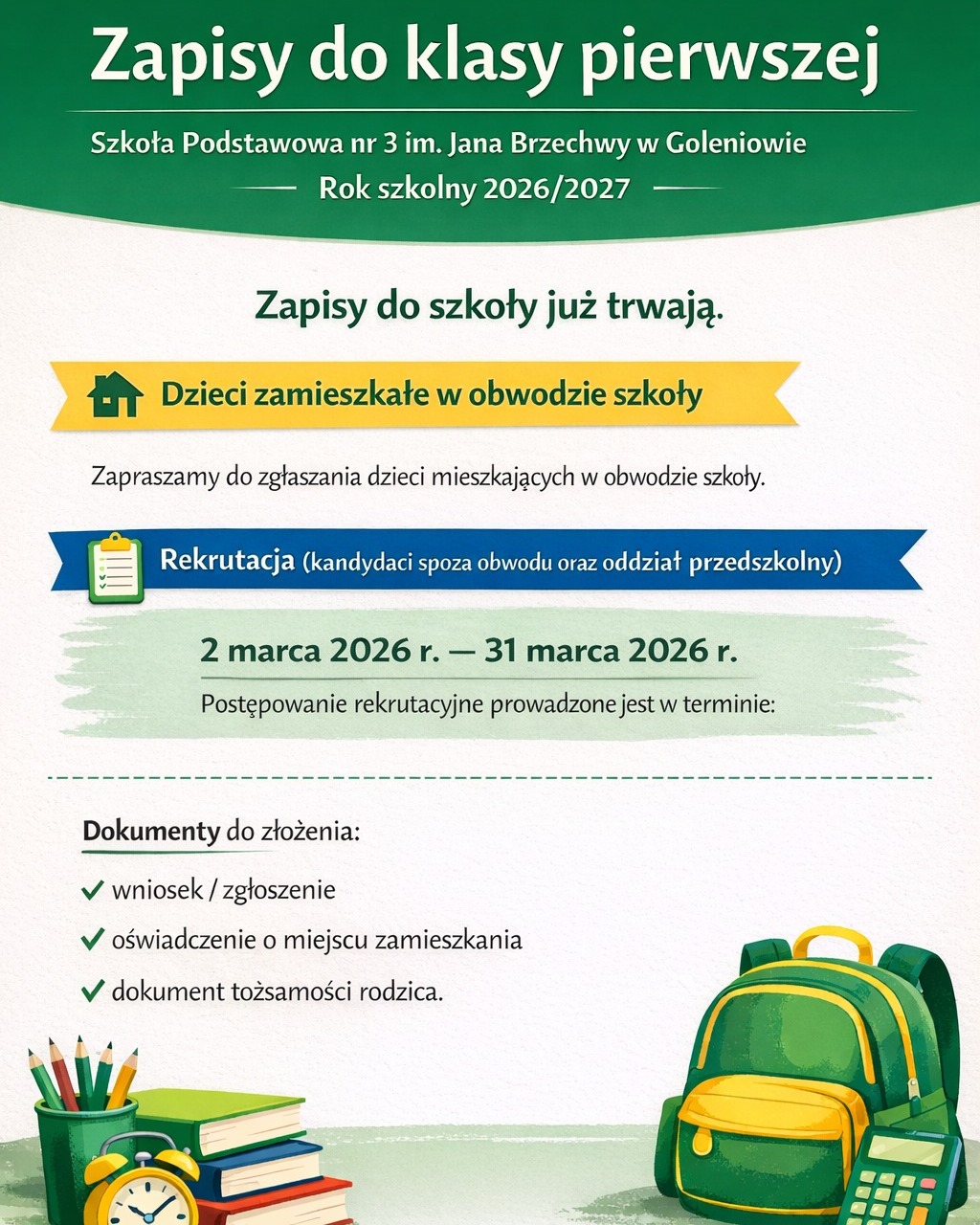 Dokumenty do pobrania znajdują się także w zakładkach Rodzic - Rekrutacje....